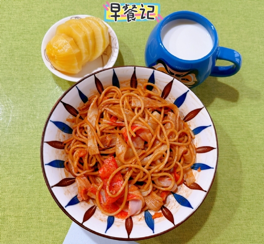 现成的热干面,煮一煮就好,加了点蟹柳增加口感。