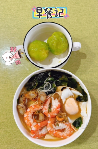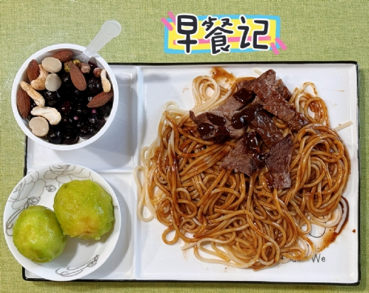 6:20闹钟,6:45摆拍结束,剩了一粒猕猴桃,其它吃光光,面汤都不剩。
